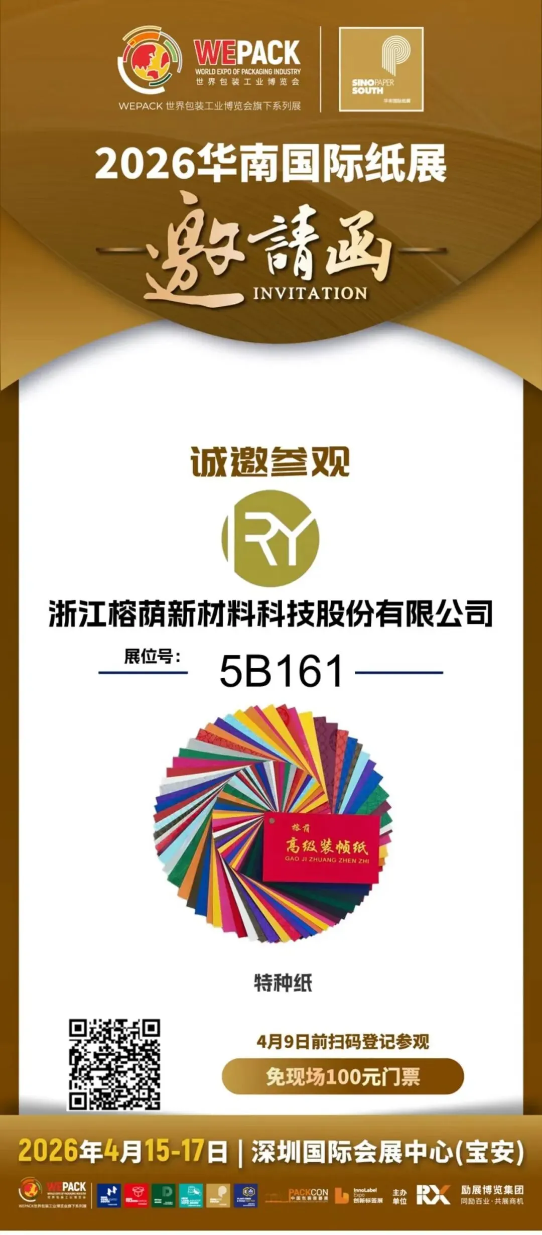 2026 华南国际纸展(SinoPaper South 2026)将于4 月 15—17 日在深圳国际会展中心(宝安)举办,由励展博览集团与全国工商联纸业商会联合主办,是华南极具影响力的纸业专业展会。