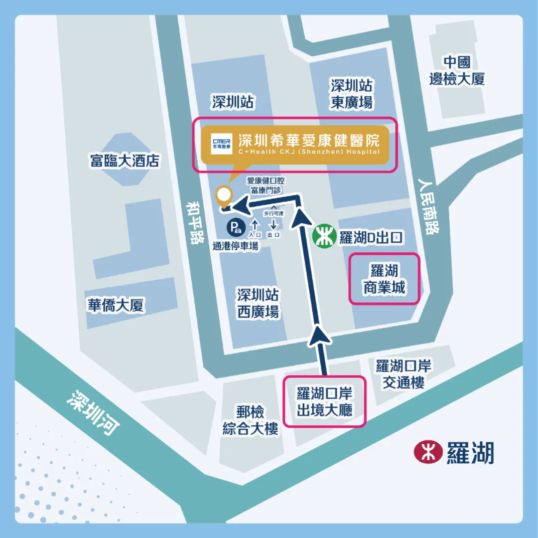 秉承爱康健港式口腔服务,引进数智化诊疗新技术,提供全方位的口腔疾病诊疗,包括牙齿矫正、种植牙、牙周治疗等。作为希玛医疗集团的优势专科,由林顺潮教授领军,汇聚深港眼科专家及国际专家顾问团,开展疑难眼病会诊中心,提供近视矫正、屈光白内障手术、眼底病治疗等服务。由香港中文大学前影像及介入放射学系系主任区皓智教授(Prof. Anil Ahuja)领军,引进西门子高端3T MRI及高速CT SCAN医学影像设备,成像更清晰和细致,支持精准的医疗诊断。与香港中文大学陈重娥教授(Prof. Juliana Chan)创办的基琳健康合作,未来利用专利精准防控糖尿病技术,开展多项特色慢病管理和体检服务、包括精准糖尿病基因筛查和管理服务、减肥及体重管理服务、及糖尿和眼科关联的特色体检服务等,为患者提供长期的健康管理。医院汇聚内地及香港各大领域的专科医生,不仅具备专业的医疗技术,更有香港执业经验及国际化的医疗视野,能够为患者提供与香港及国际接轨的医疗服务;以香港及国际名医专家团为核心,战略合作香港多家医疗集团,将持续引进更多香港及国际知名专家,打造高端港式医疗技术平台。医院同步国际领先技术,配备了国际水准的高端影像诊断及眼科手术医疗设备,包括3.0T核磁共振、双源螺旋CT、数字化乳腺X射线机、LuxOR Revalia眼科手术显微镜等,为先进诊疗技术提供强有力的支撑和保障。通过与国际接轨的科技和治疗手段,根据每位患者的需求,量身设计专业合适的医疗方案,提供个性化的高质量医疗服务。作为深港跨境医疗合作的示范,深圳希华爱康健医院致力于推动深港医疗服务的“三通”(药械通、人才通、数据通),与香港民建联及八家医疗机构签署战略合作,共同打造跨境医疗联合体,实现“全科与专科融合”的一站式诊疗服务。此外,医院将在罗湖政府的政策支持下,推动深港跨境病历互联互通,试点开展跨境商业医疗保险结算业务,实现快速预约、快速诊疗、快速结算,提升患者就医体验。医院为患者提供高质量、国际化的优质港式服务。如特设口岸24小时热线和微信小助手,可线上实时了解医院服务项目、价格和各科室就诊时间,进行提前预约;院内增设粤语服务专区,同时在罗湖口岸设立健康服务站(罗湖口岸交通层B22柱子侧面),提供定点定时的一对一咨询、引导到院看诊服务等。医院位于罗湖火车站上,地理位置优越、交通便利,从罗湖关口步行至医院只需数分钟便可到达医院,极大方便跨境患者就医。香港希玛医疗集团由“世界百强眼科名医”林顺潮教授于2012年创立,是大湾区领先的港资医疗集团,于2018年香港联合交易所主板上市。集团以医疗服务为核心,以眼科、口腔及综合医疗为主,包括医学影像、健康管理、家庭医学、肿瘤科等优质专科。作为一名全国人大代表、香港立法会议员,林顺潮教授全力响应国家医改、并大力推动香港与大湾区医疗融合:2013年,集团在《内地与香港关于建立更紧密经贸关系的安排》(CEPA)框架下,于深圳创办了内地首家港资眼科医院,将港式医疗服务带入内地,现被深圳市政府誉为“深港医疗合作”的成功例子。集团至今已在内地和中国香港拥有医院、门诊和视光中心近60家,旗下的深圳爱康健口腔医院是深圳老字号,多年来已为香港居民提供约300多万人次的服务,也是香港「长者医疗券大湾区试点计划」的指定医院。2024年2月,集团开启新的战略篇章,与罗湖区政府签署战略合作意向书,全速打造深圳口岸港式多专科医疗服务平台;2025年1月15日,深圳首个“港式口岸综合医院”——深圳希华爱康健医院盛大开业,致力为大湾区居民提供优质的港式医疗健康服务。