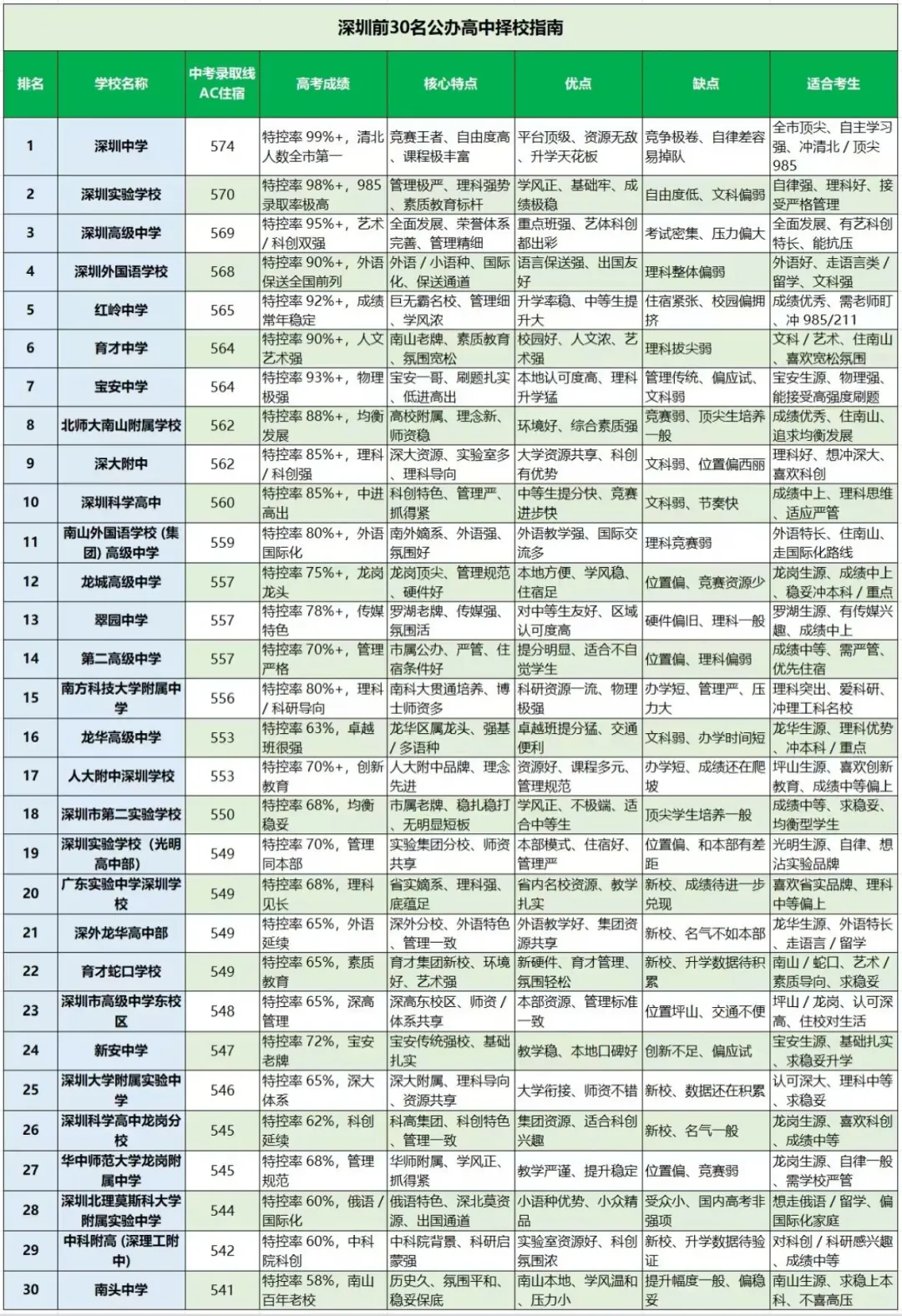 建议收藏 | 深圳30大公办高中优缺点及择校攻略!深圳中考志愿填报指南!