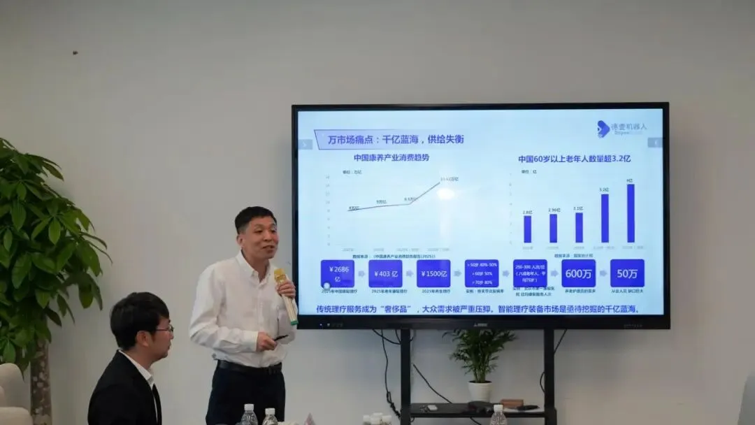 天愈集团卢总详细介绍了公司在康养领域的系统化布局,作为哈工大校企,公司依托校本部机器人实验室及数字健康实验室的技术支撑,聚焦脊柱与睡眠健康领域。核心推出从前端AI体检到后端健康管理的“健康小屋”整体解决方案,重点分享了与招商集团、各地政府及民政部门的深度合作案例。介绍了核心产品包括AI人脸扫描体检,60秒快速筛查;小愈机器人针对脊柱、亚健康、慢性病调理;及家用爆款护眼仪,4个月销量近10万台。公司在全国200余家品牌门店及嵌入式服务点,产品落地医院、社区养老、企业工会及药店、酒店、景区等跨界场所,覆盖从亚健康人群到老年康养的多元需求。
