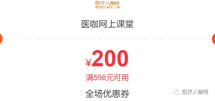 为感谢大家的支持,医咖特地为大家准备了价值233元的医咖网上课堂抵扣券,点击本文左下角“阅读原文”即可领取。使用券后加入医咖网上课堂一年VIP会员仅需399元,本券三天有效,过期作废!
