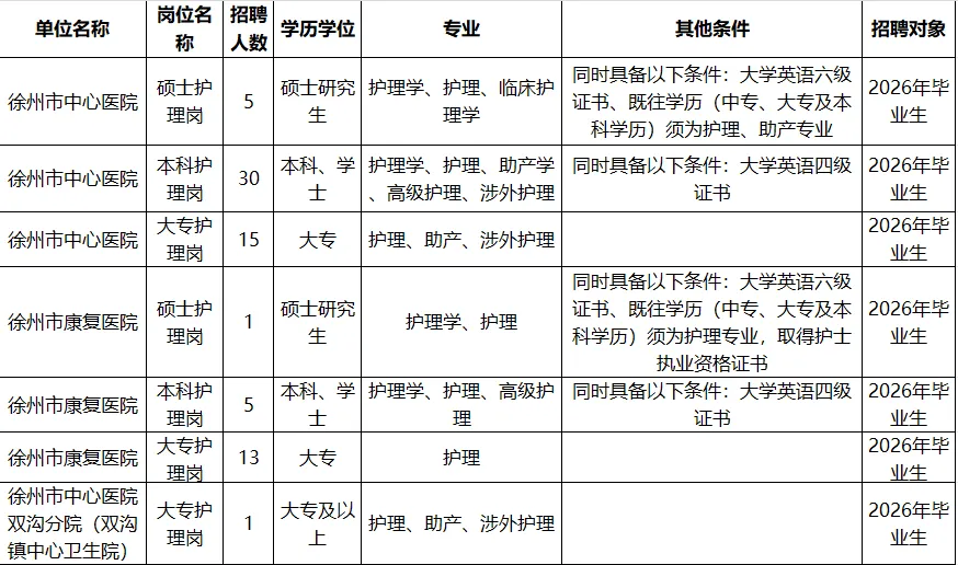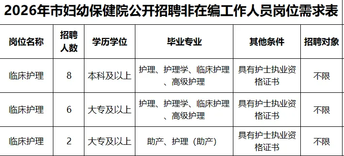 5、学历学位条件:招聘条件中的“2026年毕业生”,指在2026年毕业并已取得学历(学位)证书,且报名时无工作单位的人员。2024年、2025年普通高校毕业生,以及国(境)外同期毕业且已完成学历(学位)证书认证的人员,如报名时无工作单位,可应聘面向2026年毕业生岗位。聘用后有关事项按国家规定办理。