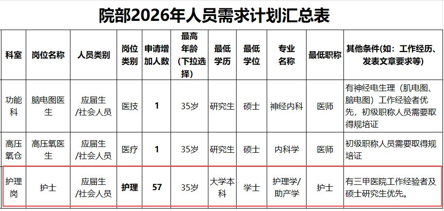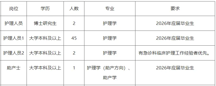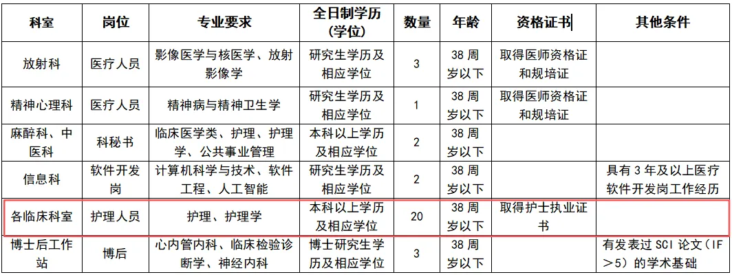 招聘编外护理20名