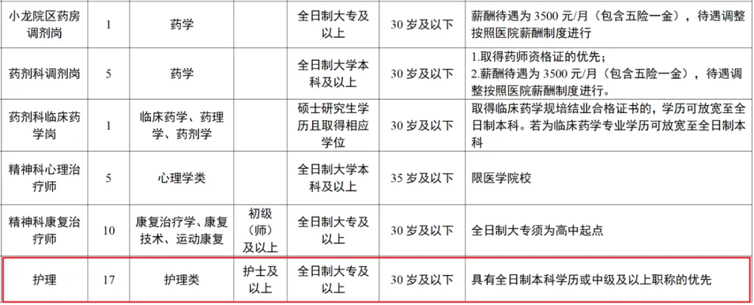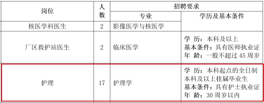 招聘编外护理17名