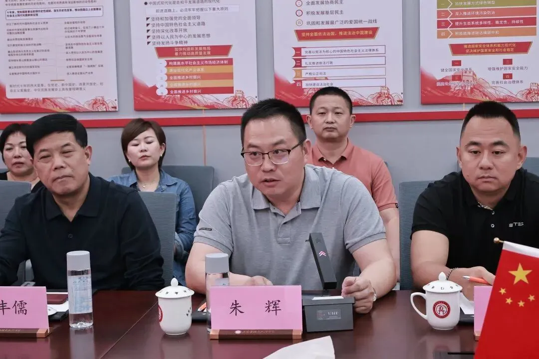 参观结束后,双方在温馨融洽的氛围中举行了交流会谈。会谈伊始,嘹亮的国歌奏响,全体参会人员肃立致敬,赤诚的家国情怀与深厚的乡贤情谊在旋律中交融,也为此次交流奠定了庄重而热烈的基调。