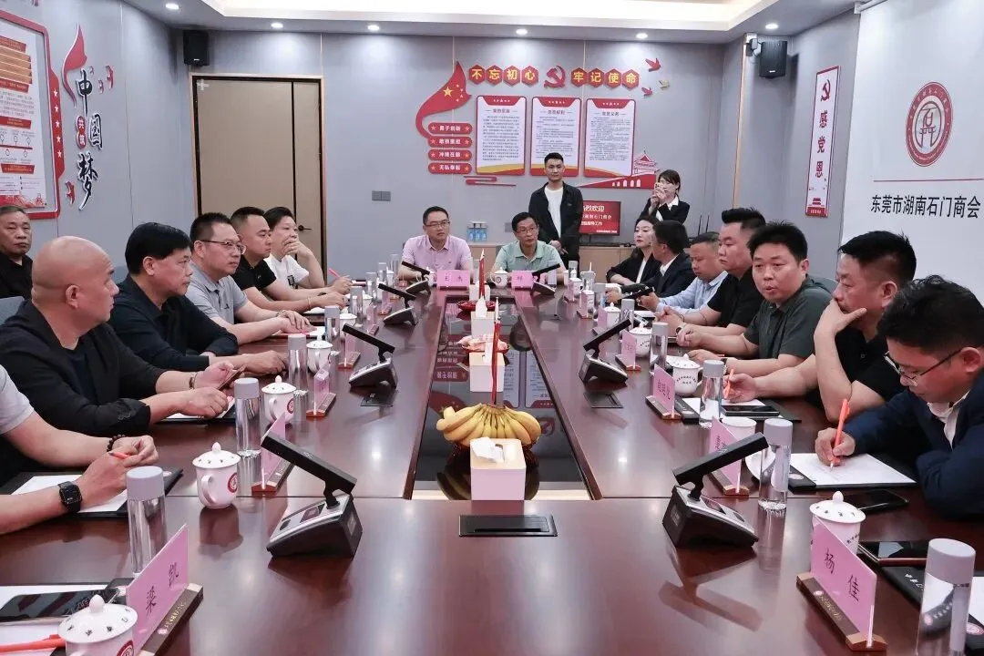 进入东莞市湖南石门商会,扑面而来的是整洁有序的环境和热情周到的接待,每一处细节都彰显着东莞商会同仁的专注与用心,让我们深切感受到了兄弟商会的温暖与诚意,感受到了“家”一般的亲切。在东莞商会秘书长钱多多的引导下,我们先后参观了商会的办公区域,详细了解了其职场规划、党建发展、文化建设等情况,与会人员对东莞商会严谨务实的工作作风和温馨有爱的氛围给予了高度评价。