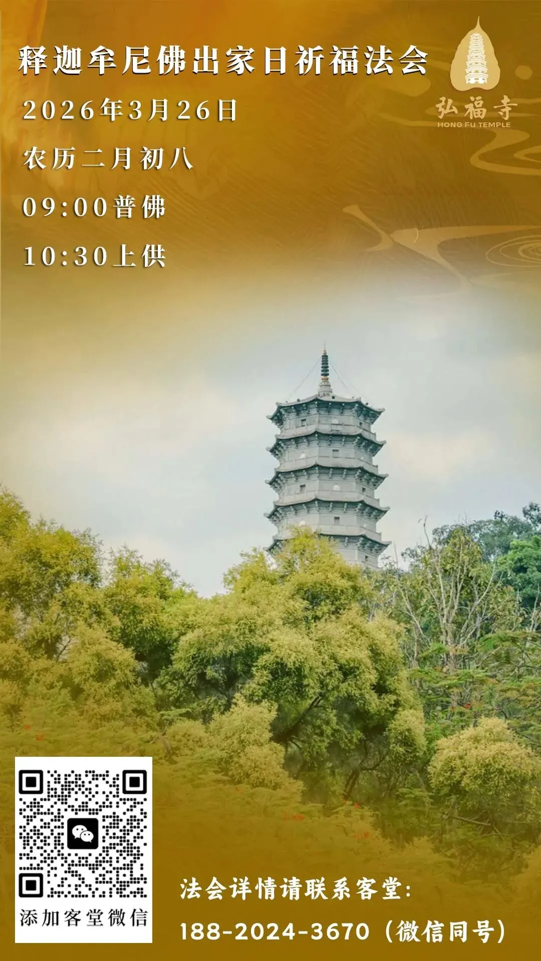 恭逢本师释迦牟尼佛出家纪念日,深圳弘福寺谨定于2026年3月26日,启建释迦牟尼佛出家日祈福法会,以此缅怀佛陀出尘求道、度化众生之深恩,祈愿正法久住、国泰民安,十方善信福慧双增、道业精进。