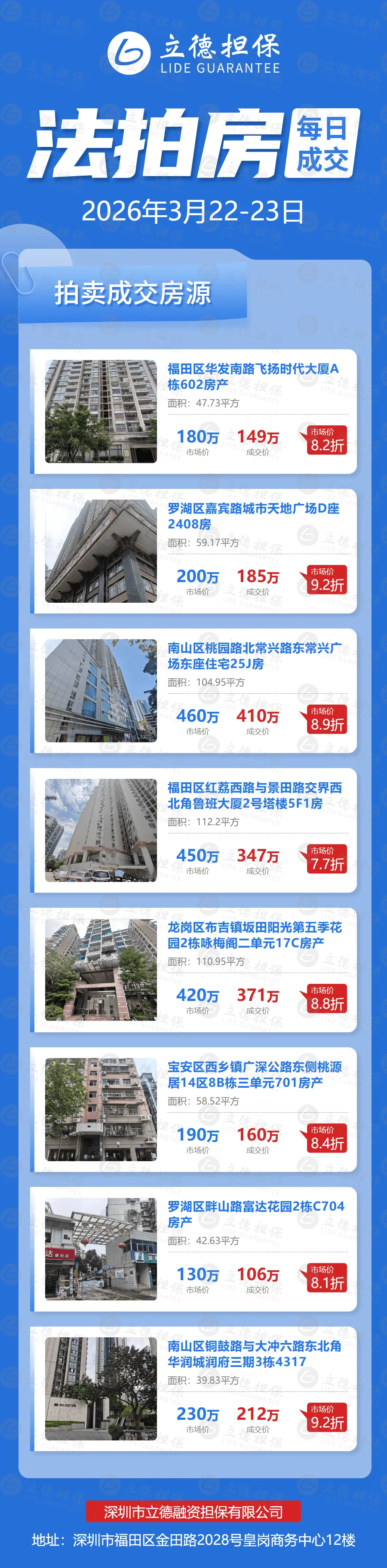 >2026年3月22-23日 | 深圳法拍房每日成交数据