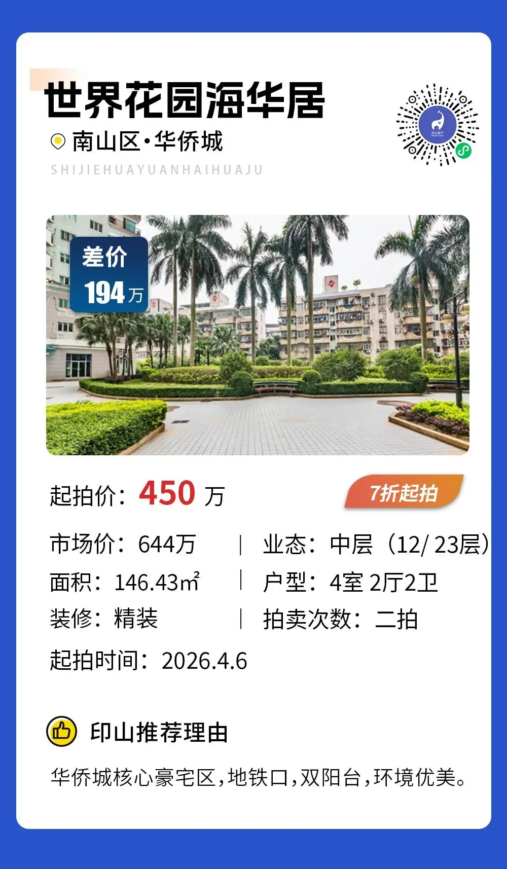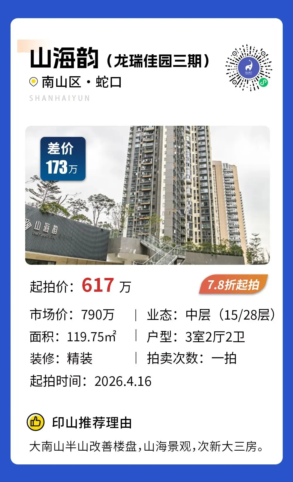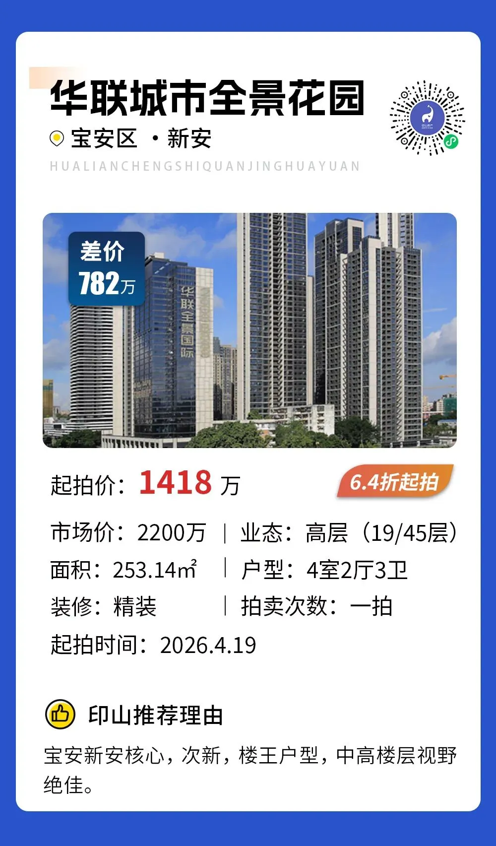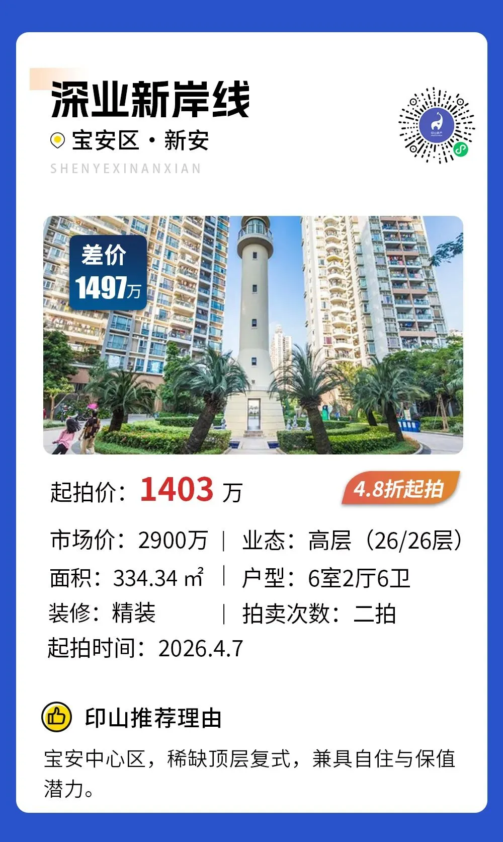 >【甄选法拍】深圳10套甄选房源推荐,捡漏782万,买宝安区新安大4房,楼王户型,视野绝佳