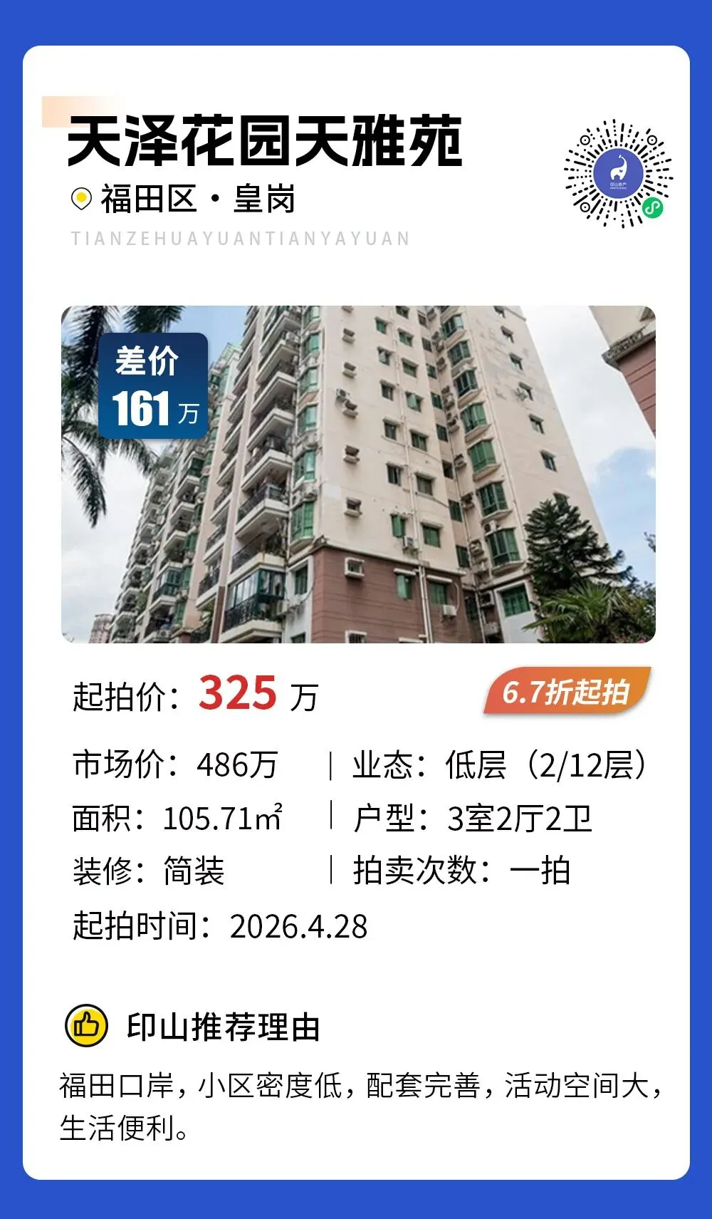 深圳福田中心绝版笋盘,386万!80㎡3+1房