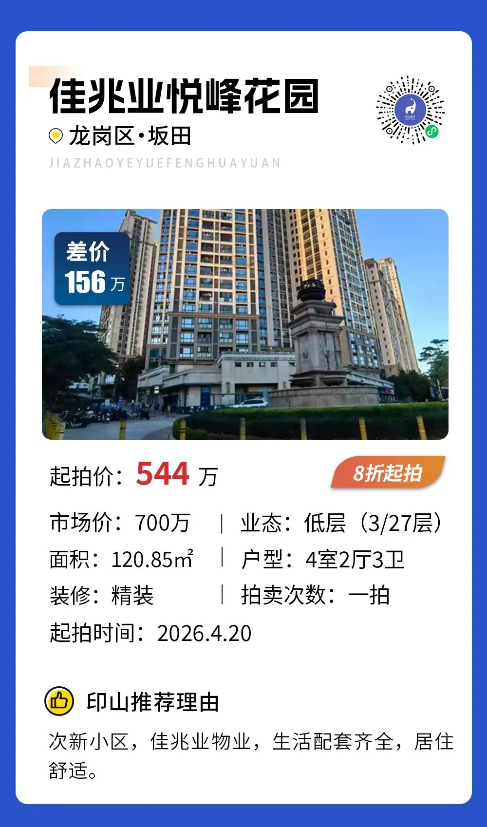【甄选法拍】深圳10套甄选房源推荐,捡漏782万,买宝安区新安大4房,楼王户型,视野绝佳