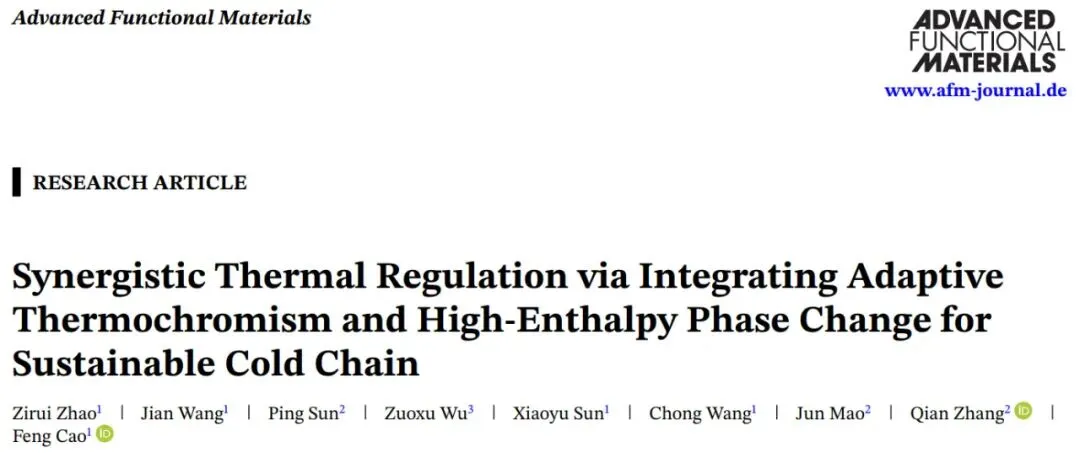 相关研究成果以“Synergistic Thermal Regulation via Integrating Adaptive Thermochromism and High-Enthalpy Phase Change for Sustainable Cold Chain”为标题发表在《Advanced Functional Materials》上。