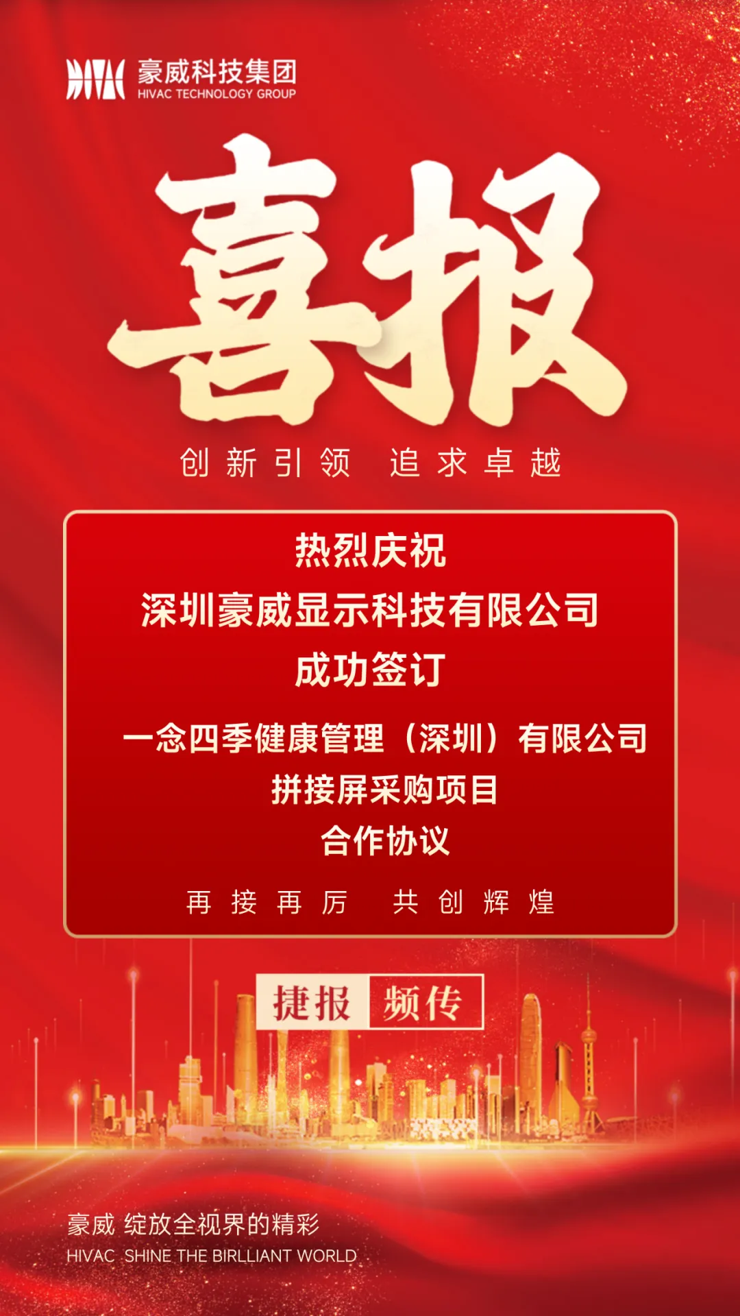 【捷报频传】深圳豪威成功签订一念四季健康管理(深圳)有限公司拼接屏采购项目合作协议!
