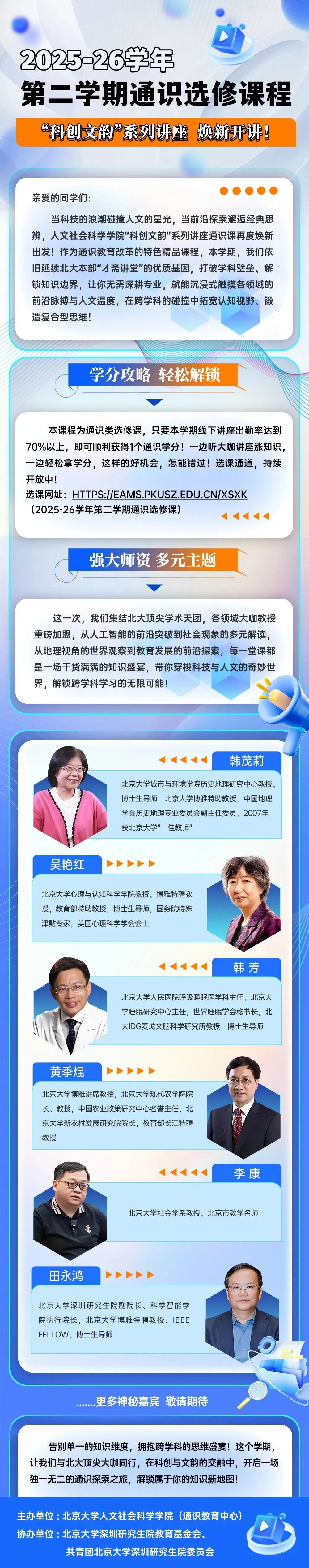 >北京大学深圳研究生院通识选修课程“科创文韵”系列讲座焕新开讲!