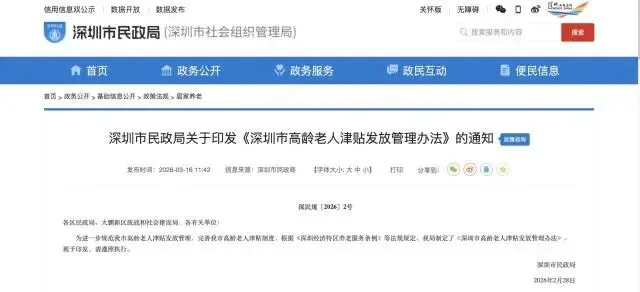 新修订的《深圳市高龄老人津贴发放管理办法》