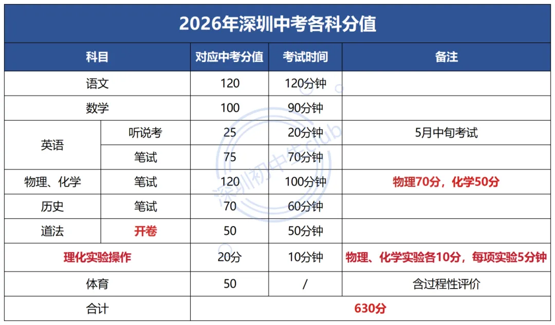 自2026年起深圳高中阶段学校考试招生制度迎来新一轮改革。中考考试科目、方式及分值均有调整,中考满分由原来的610分上调至630分。