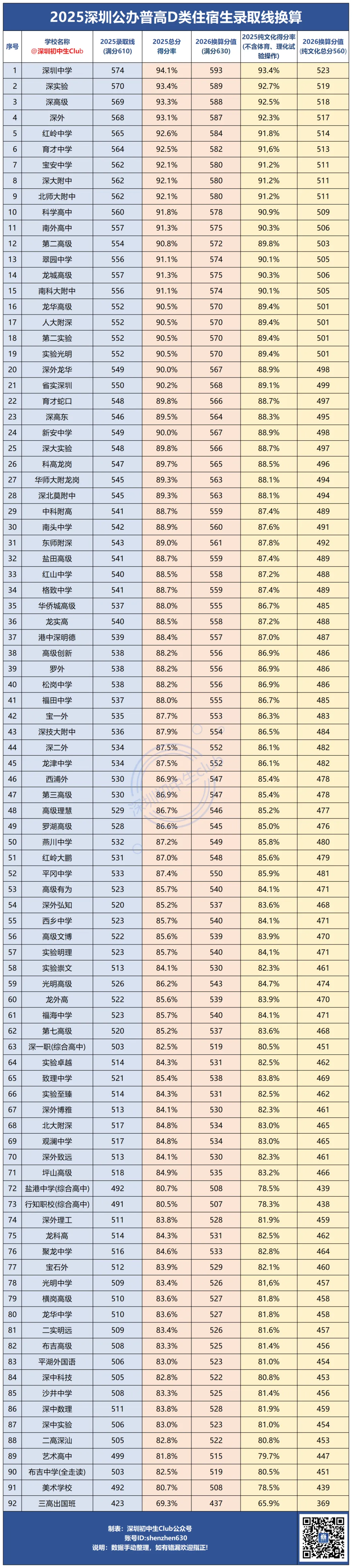 纯分化得分率93.4%,简单理解就是深户考生2025年裸考上深中住宿学位,100分的试卷要拿到93.4分以上,不考虑其他影响因素的情况下,2026年中考生也可以大致参考这个标准去定目标。