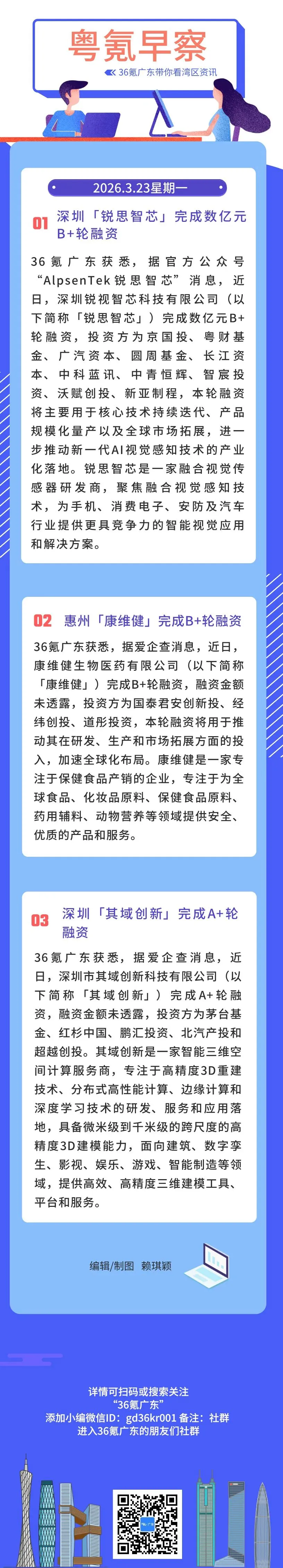粤氪早察 | 深圳「锐思智芯」完成数亿元B+轮融资