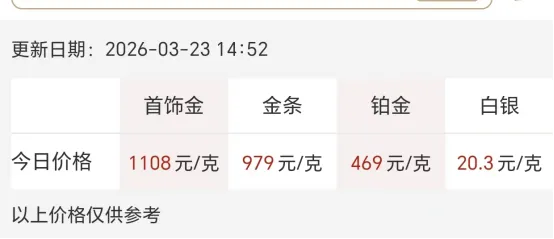 近日,国际金价连续下跌。就在上周,国际金价创下1983年3月以来最大单周跌幅。23日,国际黄金市场跌势延续,盘中一度跌破每盎司4100美元关口。而在深圳水贝市场,投资金的克价一度跌至980元左右,首饰金的克价也跌至1100元左右。而就在上周五(20日),水贝市场的首饰金克价还在1220元左右。此外,品牌金饰价格也继续下行,例如周大福的足金金饰克价为1375元。