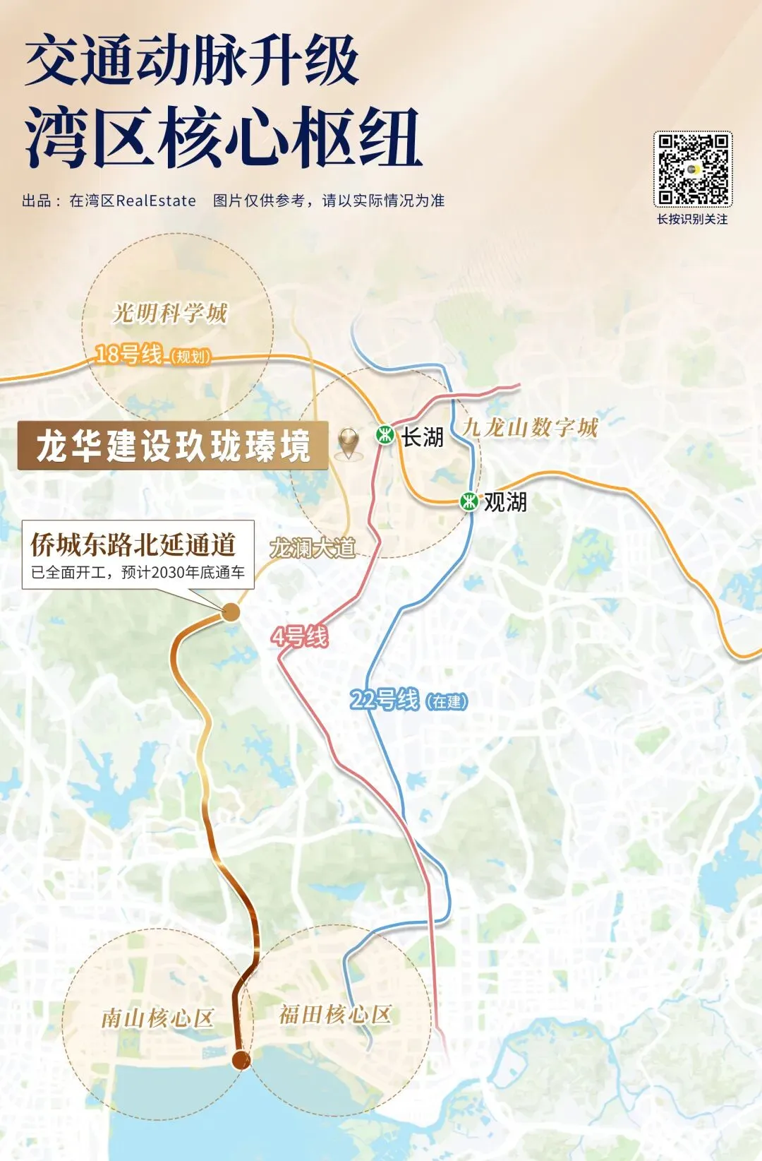 其中,在建中的22号线,更定位中轴快线,轻松实现20分钟到福田、30分钟通南山。