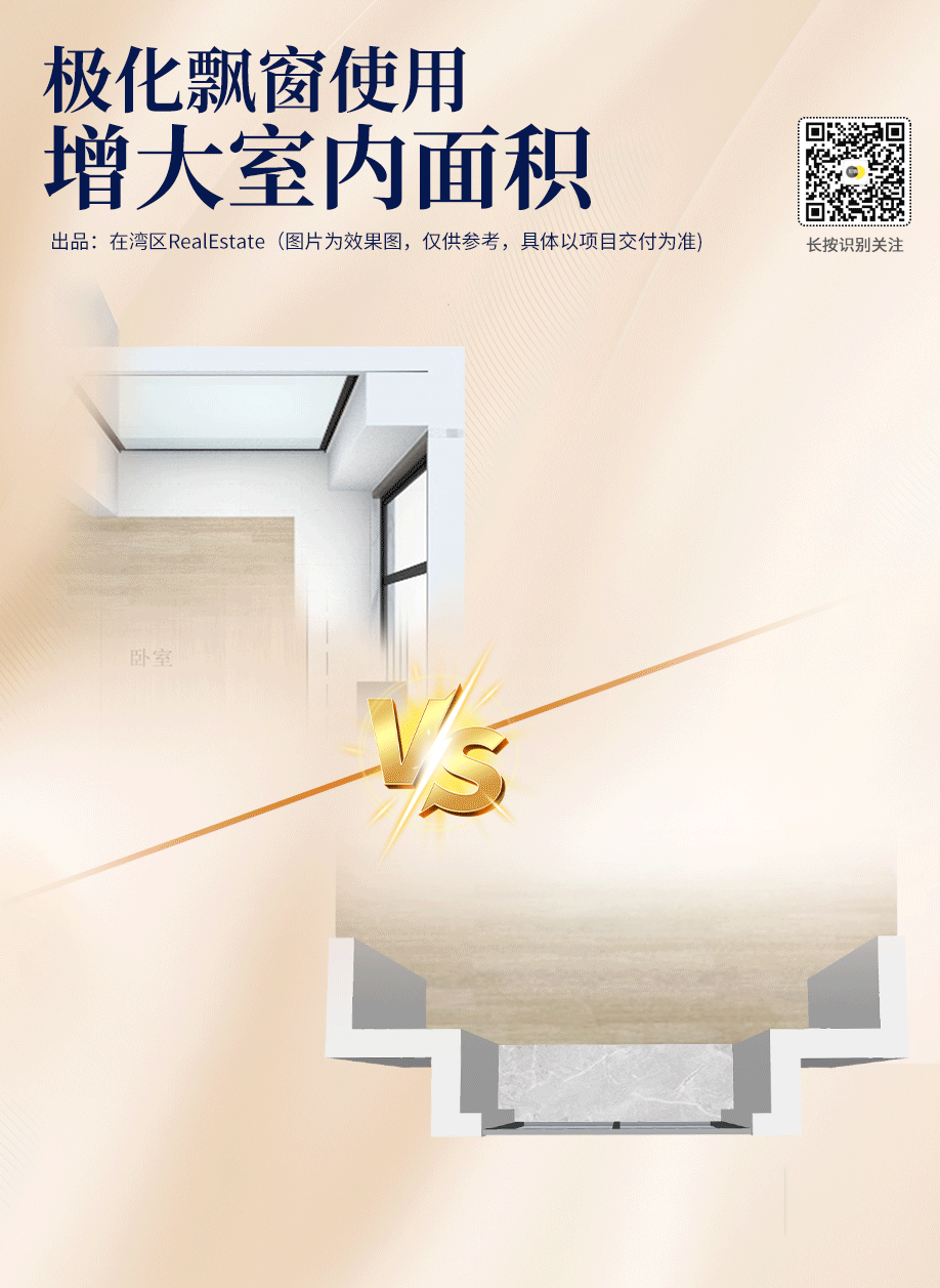 可以看到,项目户型拒绝传统的凸飘窗,而是使用新规后的内凹飘窗。