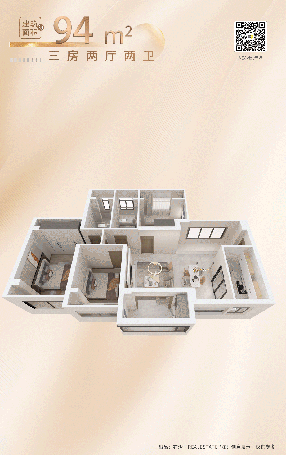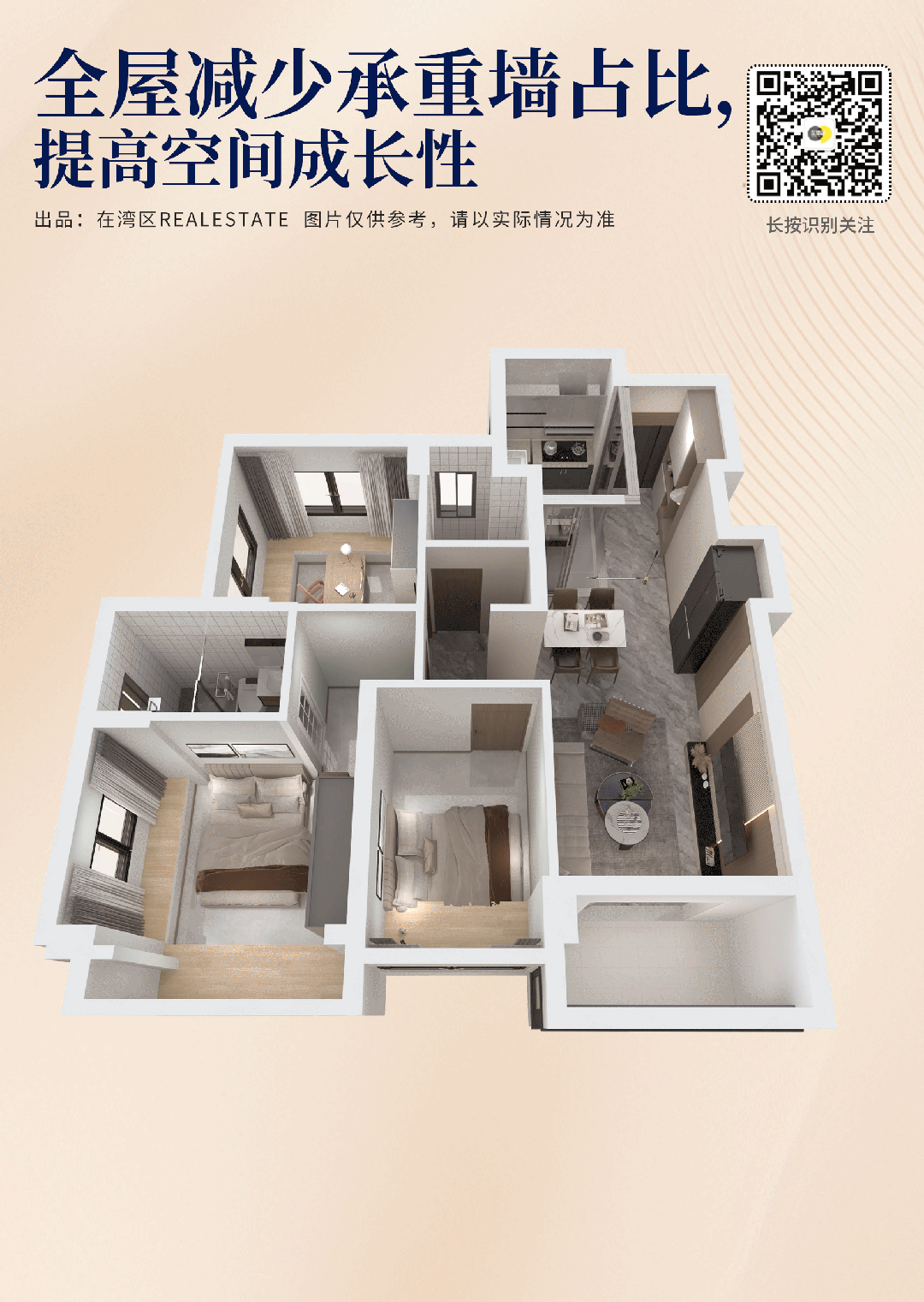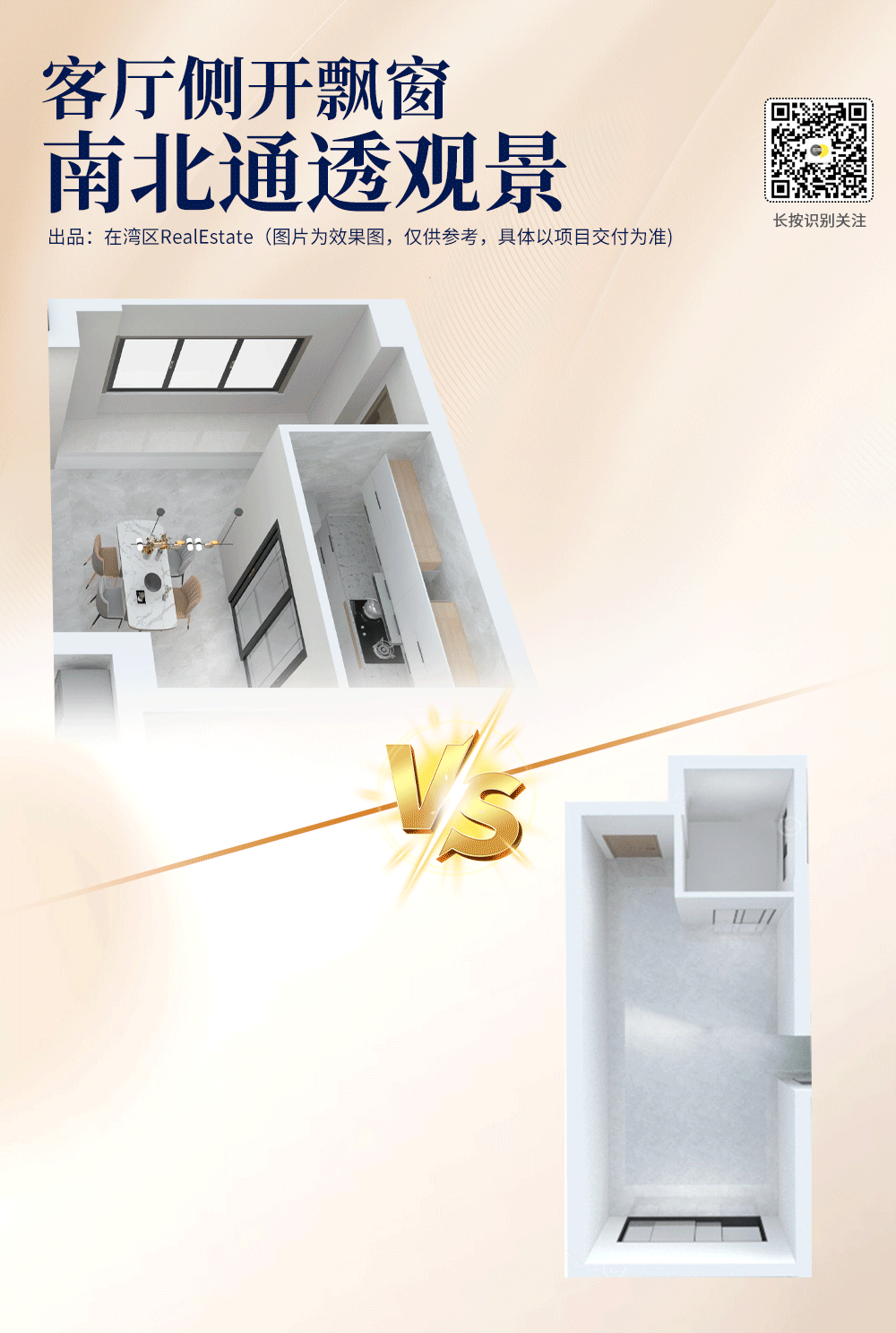 更宽阔的尺度,允许购房者用来打造1房、2房、2房、4房...多房、多功能空间随需求而定。