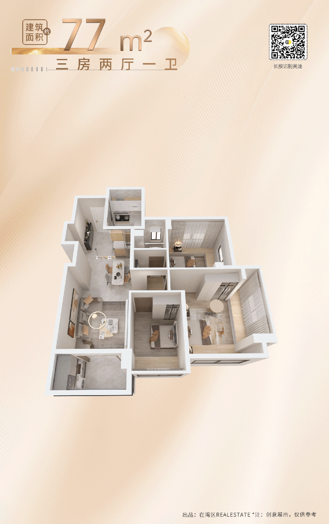 首当其冲的便是,约77m²户型,以总价240万起,实现3房自由!
