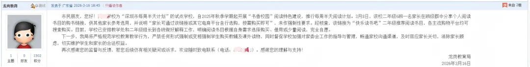 深圳家长反映被学校要求购买指定课外书,教育局:一家长分享购书链接,供大家参考