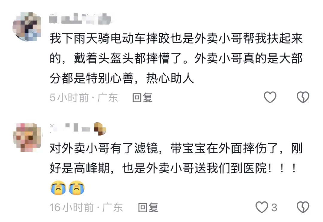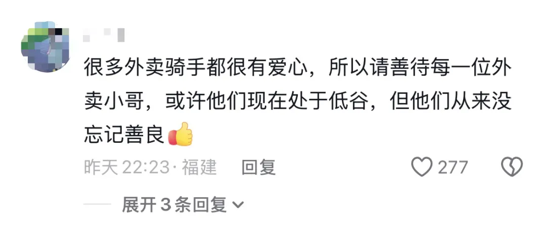 大家纷纷为这位外卖小哥点赞