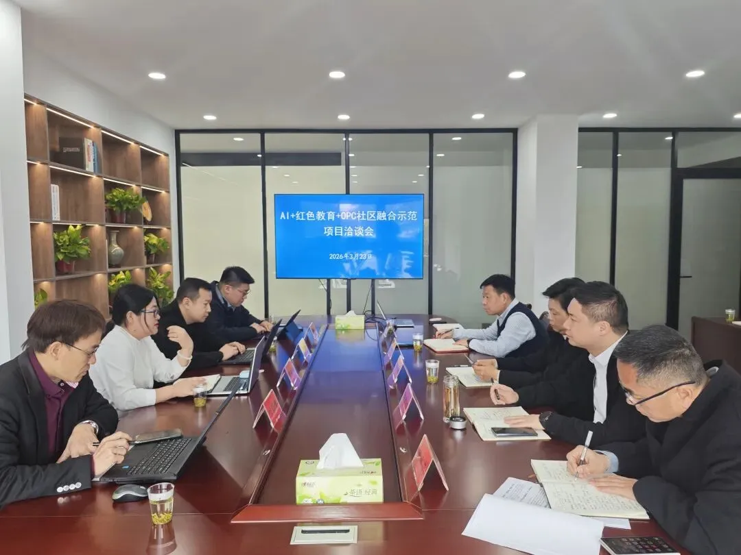 23日上午,双方在高邮进行座谈交流。会上,叶韶峰解读了周山镇AI项目建设方案,方案包含AI主题赛事中心、OPC红色社区主题教育馆、智能教育培训中心、科技展示体验中心、红色研学与运营服务中心、AI智能硬件配套生产基地,共6部分内容。