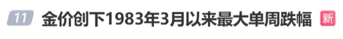 据央视财经消息,本周以来,现货黄金价格连续下跌,累计跌幅达到15%左右,创下1983年3月以来的最大单周跌幅。