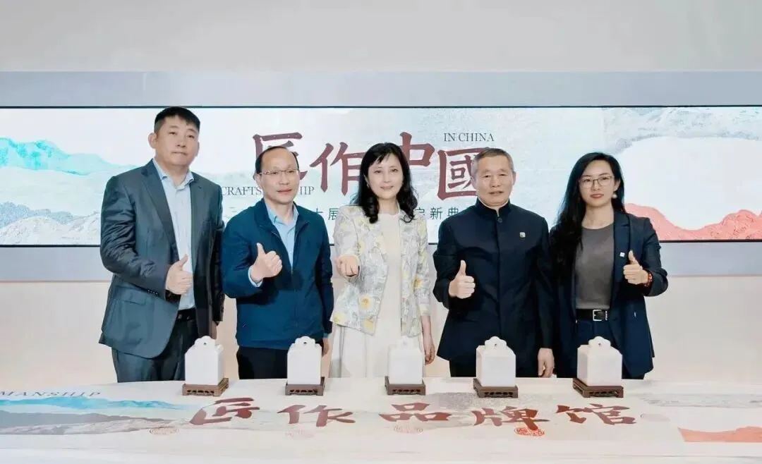 深圳湾文化广场匠作品牌馆启动仪式上,深圳市政府副秘书长吴筠,荣宝斋有限公司党委书记、执行董事赵东,西泠印社党委委员、社委会副主任邵建华,华润置地深圳公司城市运营事业部总经理徐亚男,深圳湾文化广场运营总监杨刚共同登台参与启幕。