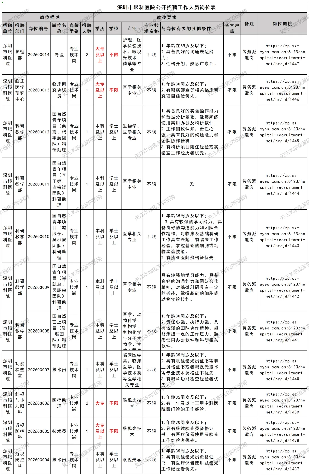 ⭐推荐服务:深圳眼科医院先后发布了多个招聘公告,扫描下面二维码,关注【本地宝深圳招聘】公众号,回复【眼科医院】,即可获取深圳眼科医院最新招聘公告全文、岗位表、咨询电话、第一时间获取报名网址/入口