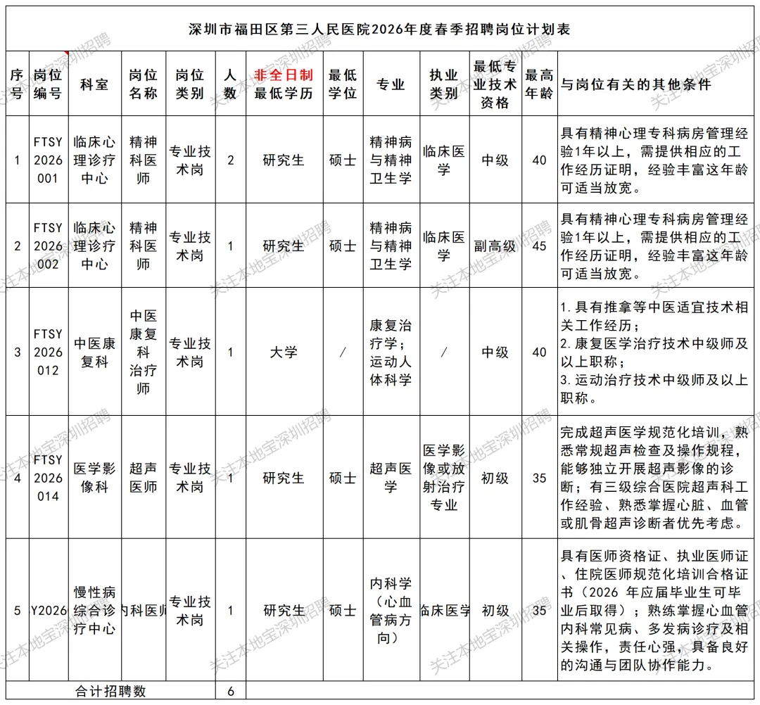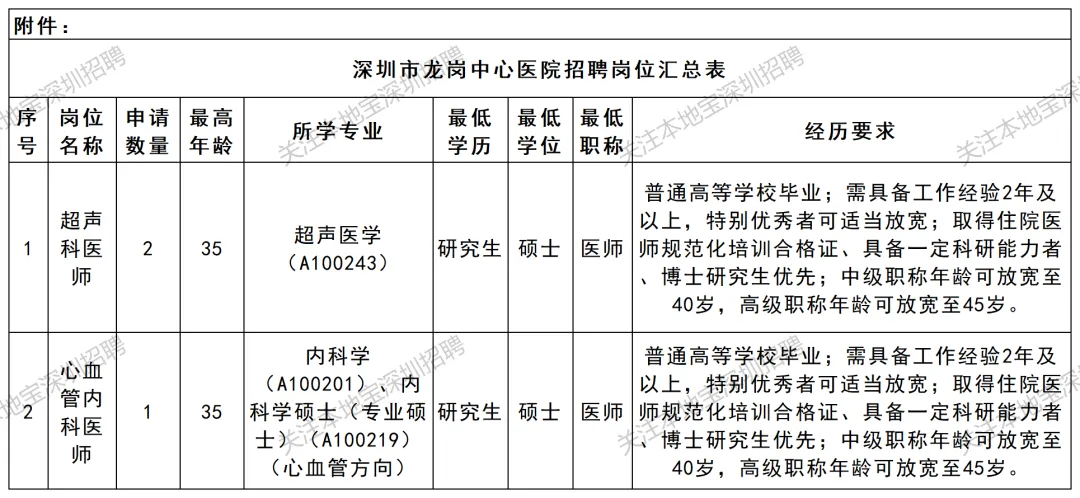 ⭐推荐服务:点击下方卡片,关注【深圳本地宝招聘】公众号,发送【医院】,即可持续获取深圳医院招聘最新公告、报名入口、岗位查询、报名材料下载