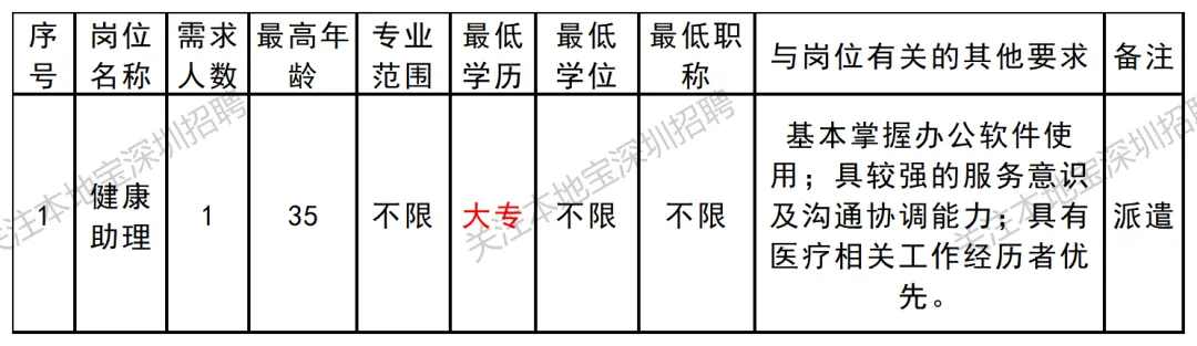 ✅招聘岗位:健康助理1人,具体要求如下图所示