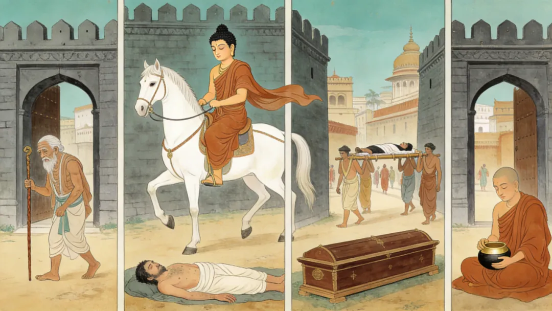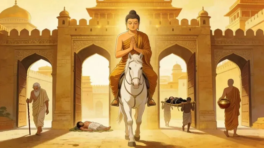 太子长大后在一次出城巡视时,看到了城外的苦行僧和老弱病残,也看到自然界虫被鸟食,鸟被鹰啄等弱肉强食的现象,内心受到很大的冲击和触动。从此便立志悟道,寻求解救苍生之法。