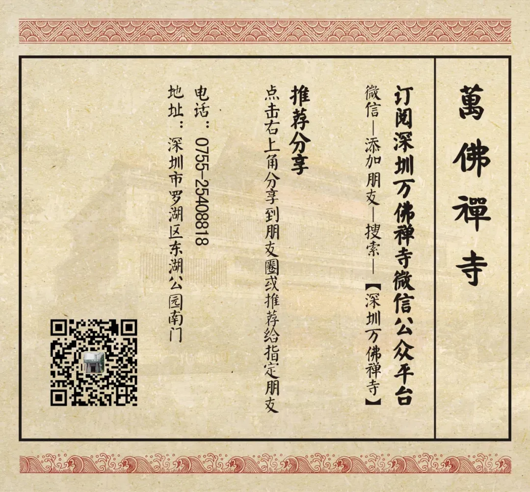 藉此殊胜因缘,深圳万佛禅寺定于是日上午9时始,启建祈福普佛法会。承此法会殊胜功德,祈愿本师慈悲护念,令诸信众消灾免难,家眷幸福安康。欢迎诸位善信檀越随喜参加,同沾法喜,共证菩提!