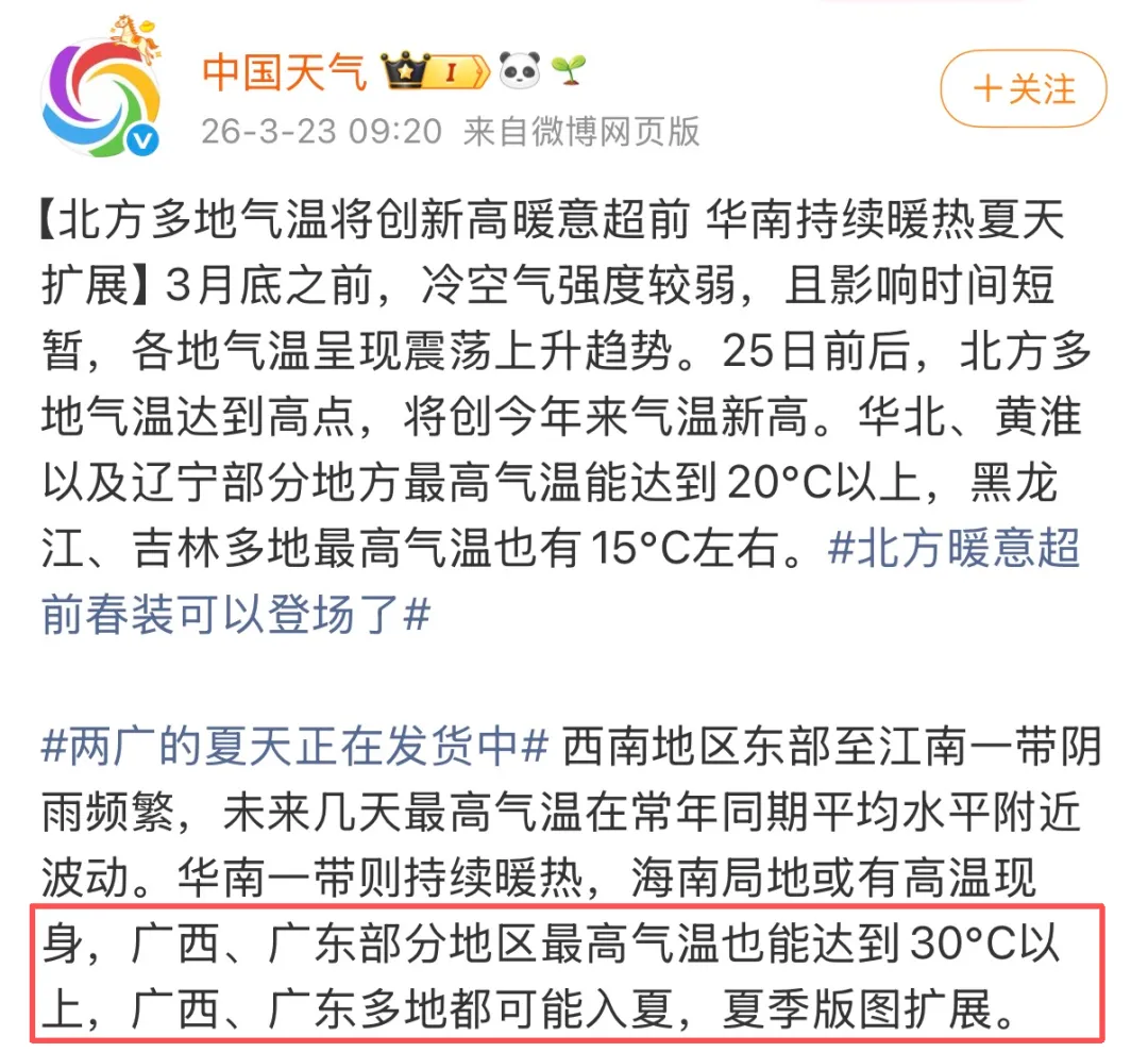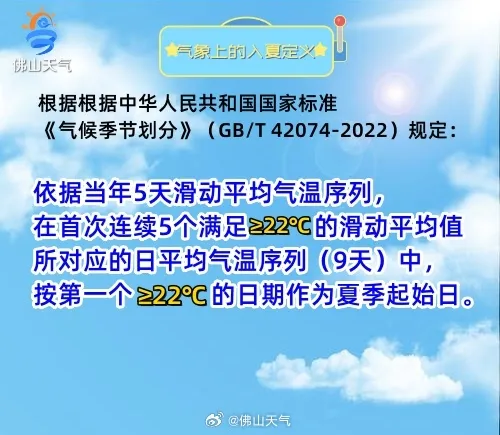 据“佛山天气”15时30分消息佛山已于3月16日入夏