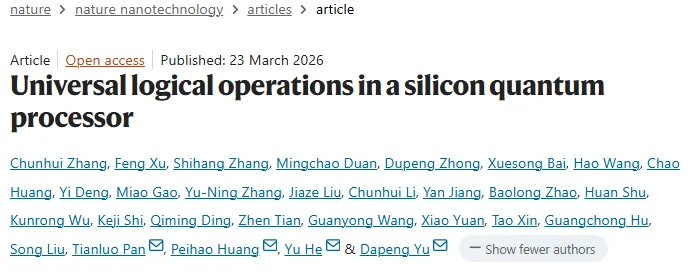Zhang, C., Xu, F., Zhang, S. et al. Universal logical operations in a silicon quantum processor. Nat. Nanotechnol. (2026).
