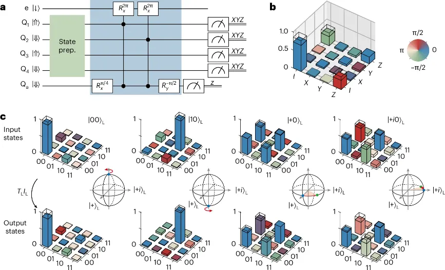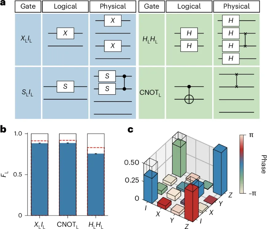 团队实现了包括XL、HL、CNOTL在内的Clifford逻辑门,并通过门-测量方法实现了非Clifford的TL门,进而制备了魔法态,其中一种魔法态的保真度(95.2%)超过了容错蒸馏阈值(92.7%)。这些逻辑门和魔法态为实现通用容错量子计算提供了关键资源。