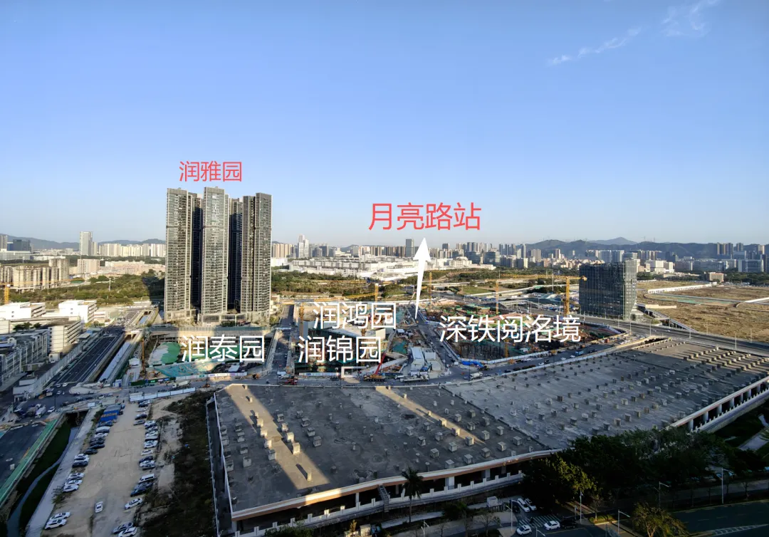 深铁阅铭境花园刚出地面,估计下半年入市。离月亮路站最近,主推96-150㎡三至四房,还有260㎡的大户型,共1348套房源。作为完全新规产品,得房率可能在100%左右。但上车门槛也是片区最高的,预计300万/套起。