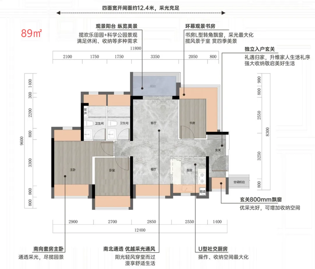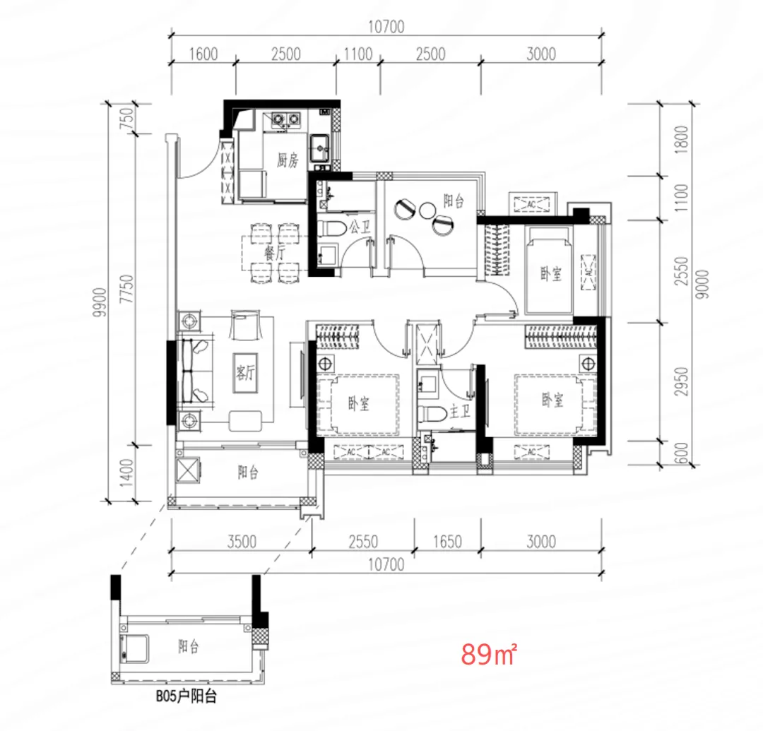 松茂御城2期是准现房,81㎡三房280万起,89㎡四房320万起。作为旧规产品,实用率能做到90%以上,89㎡做四房是靠阳台改造实现的。