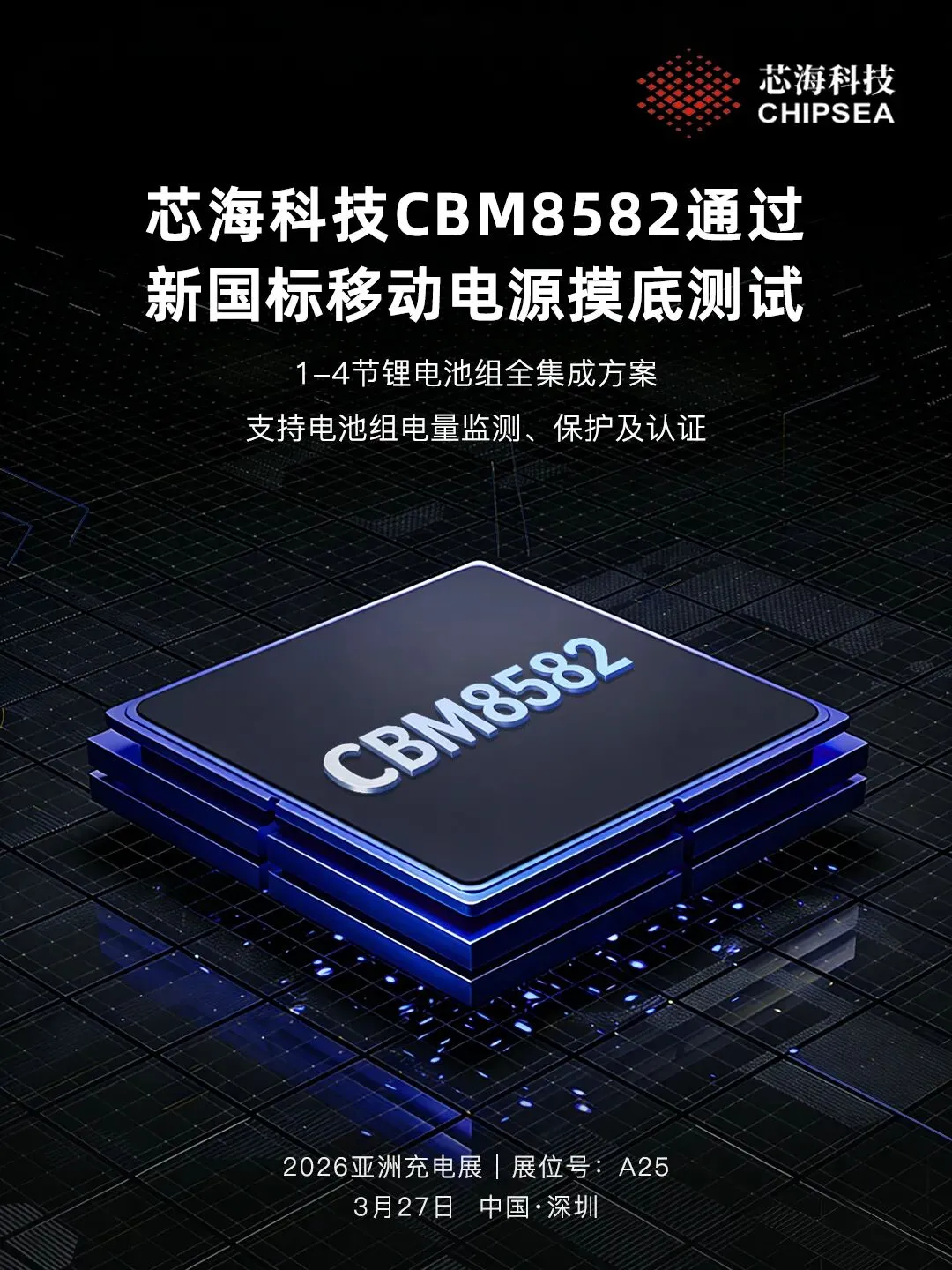 这次芯海科技将在展会上展示其面向新国标移动电源推出的 1-4 节锂电池组全集成方案CBM8582芯片,该芯片集电量监测、保护与认证支持于一体。