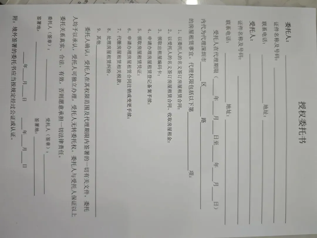 - 本人不到场:必须签授权委托书(写清委托事项、代理期限,签字确认)
