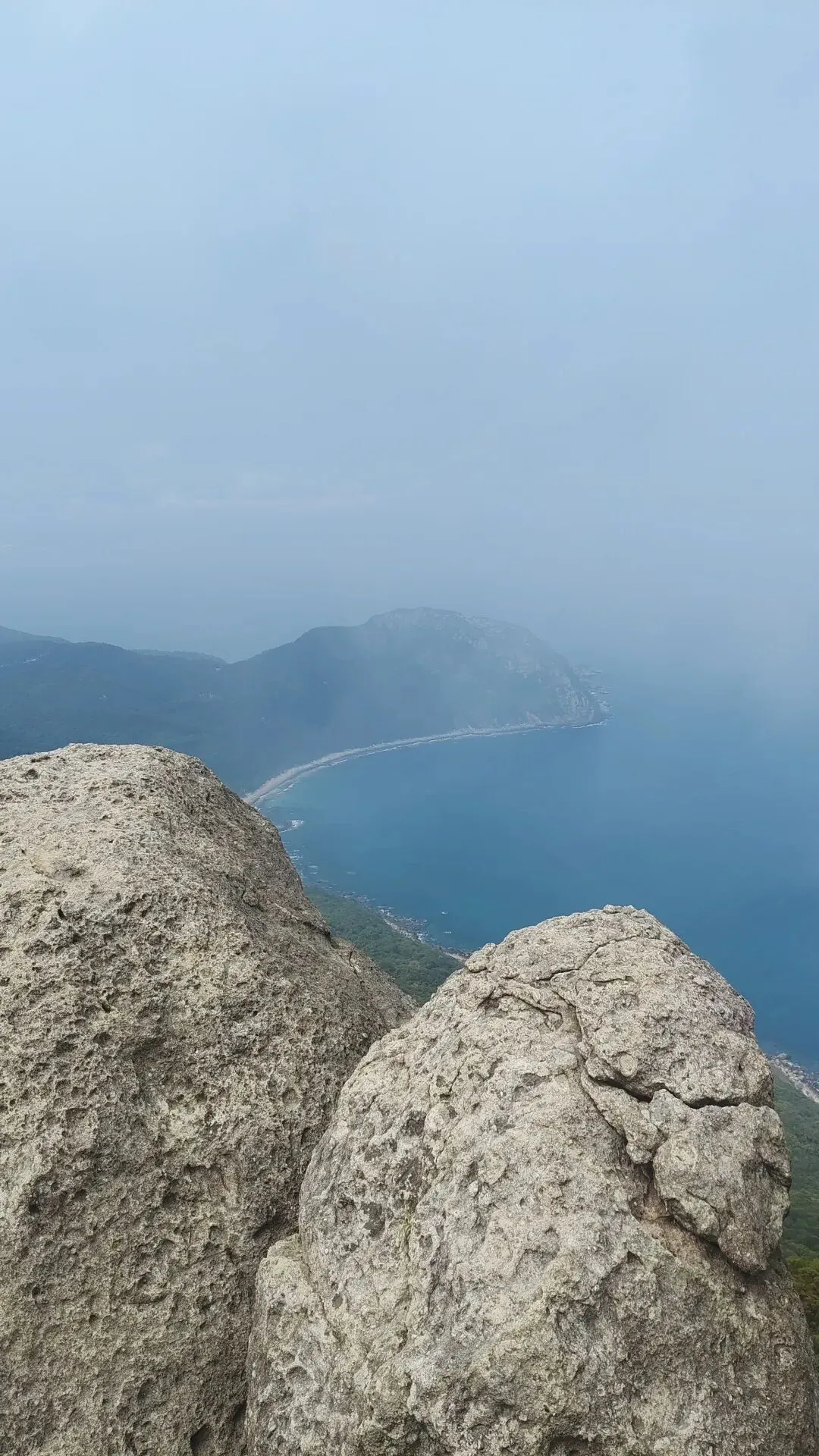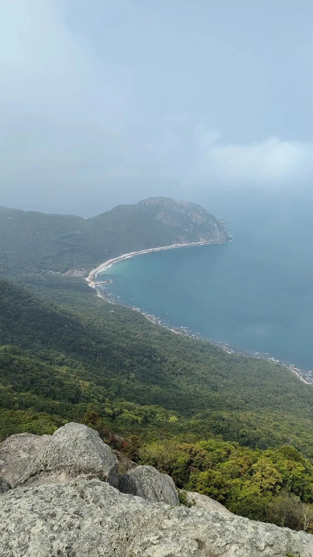 大鹏半岛之东,七娘山系蜿蜒入海,至海柴角之巅,忽有巨石数座,嶙峋错落,临渊而立。三面环水,背负青山,下瞰大亚湾,大小辣甲岛、三门岛如翠玉浮于碧波之上。浪涌数十丈,碎雪飞沫,云气往来,恍若仙境。此山无名久矣,当地人呼之曰"望郎归"。