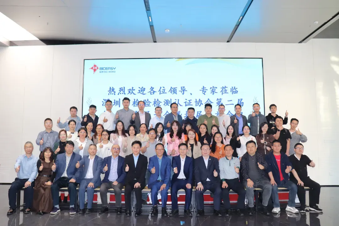 本次大会在热烈的掌声中圆满闭幕,全体参会人员合影留念。此次换届大会的顺利召开,为深圳市检验检测认证协会注入全新发展活力。易瑞生物作为新任会长单位,将以此为契机,持续深耕检验检测领域,以协会平台为纽带,推动深圳市检验检测认证行业标准化、规范化发展。