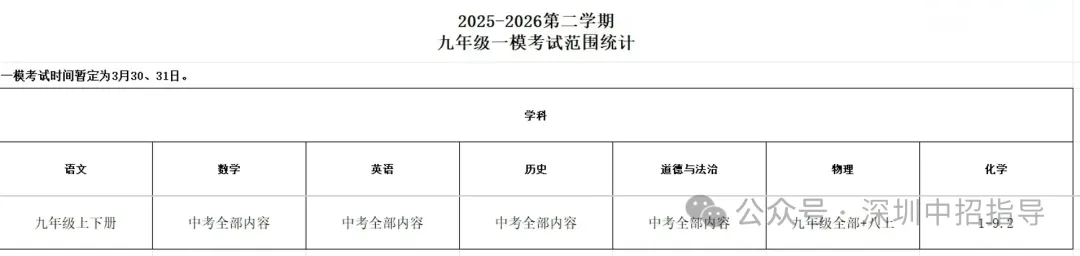 深高体系一模安排在3月30日左右,目前关于化学科目的考试时间和范围已出,参考如下: