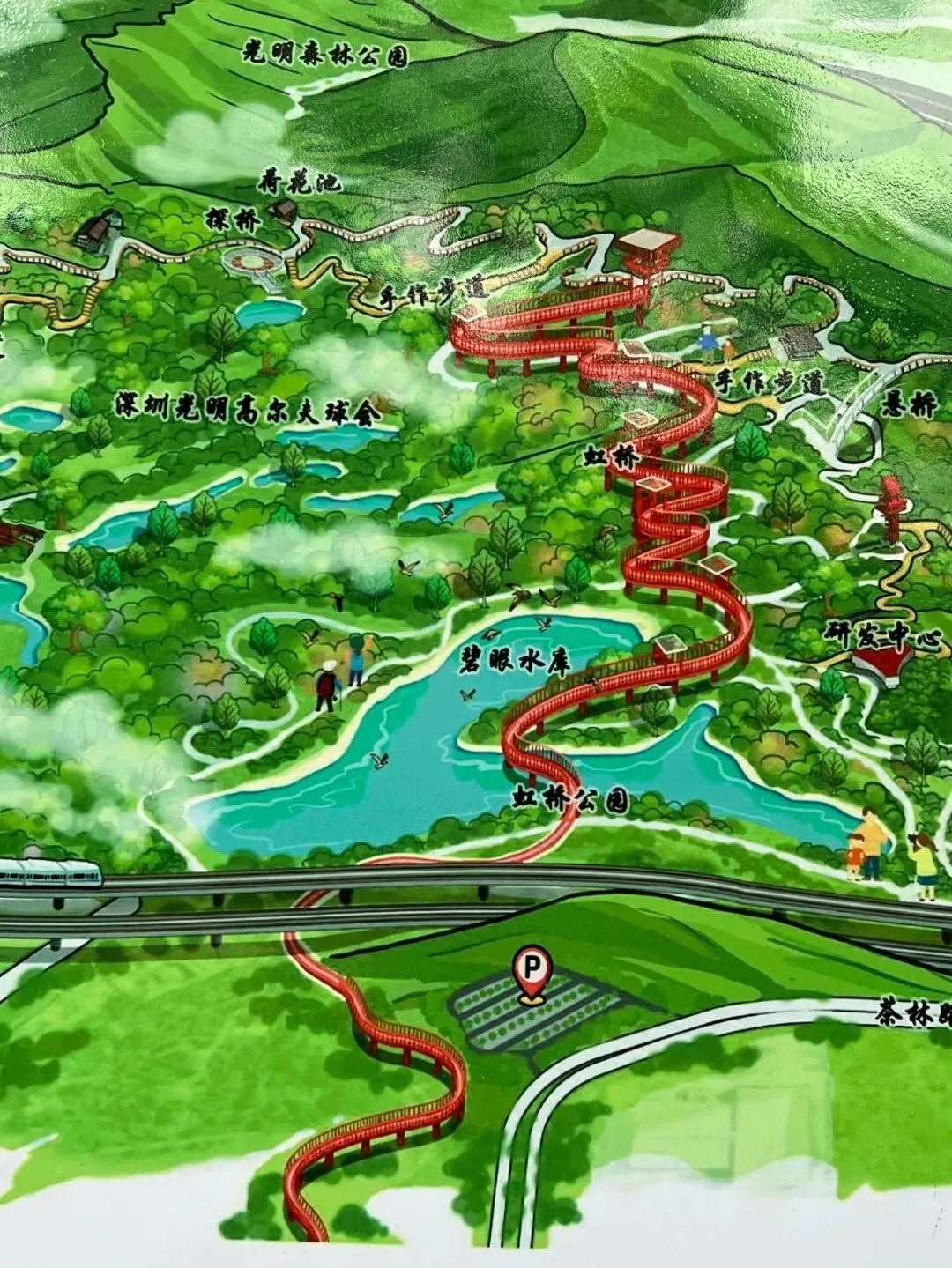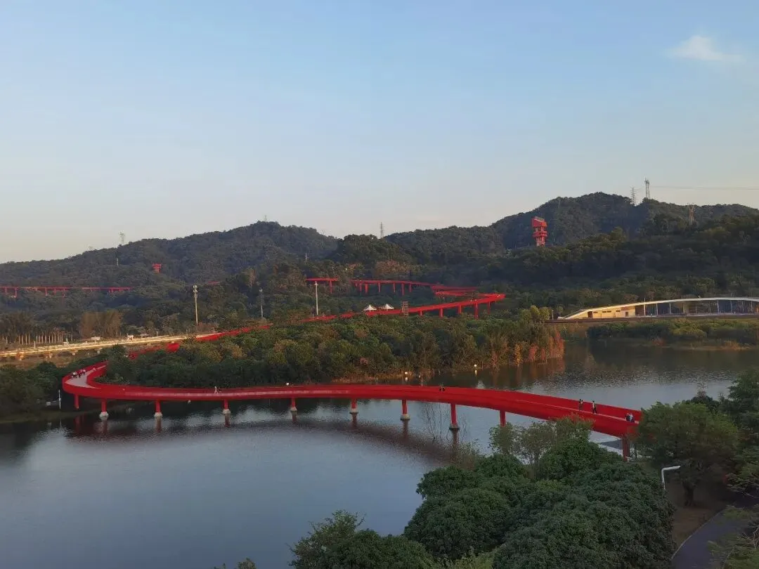 但是,但是——在深圳最不浪漫的区,最不起眼的“郊外”,深圳人花了3.2亿元,在光明区东部的森林里,轻轻撒落了一条长约4000米、平均高8米、宽5米的空中栈道,就那么蜿蜒匍匐在湖泊与森林之间。