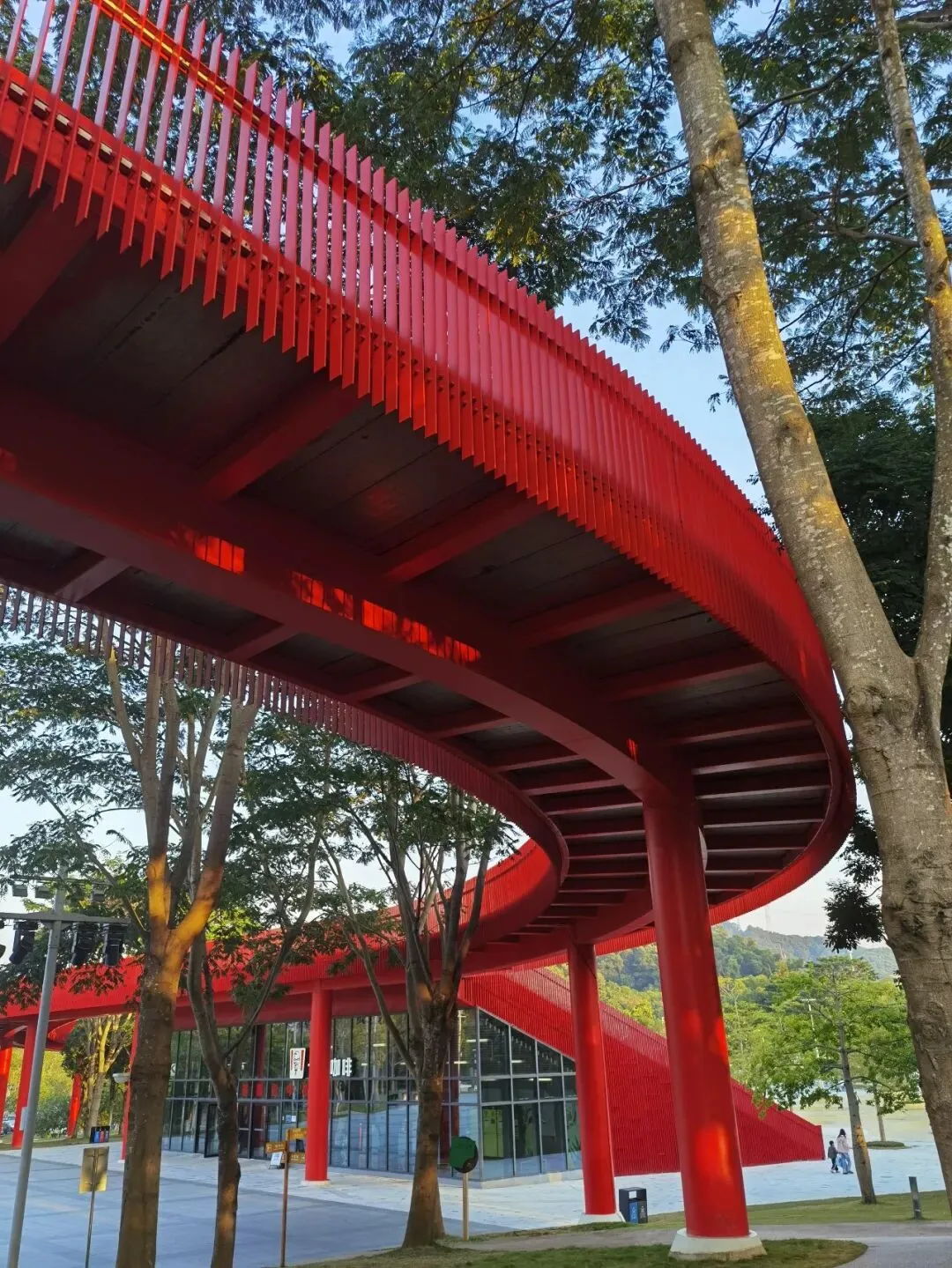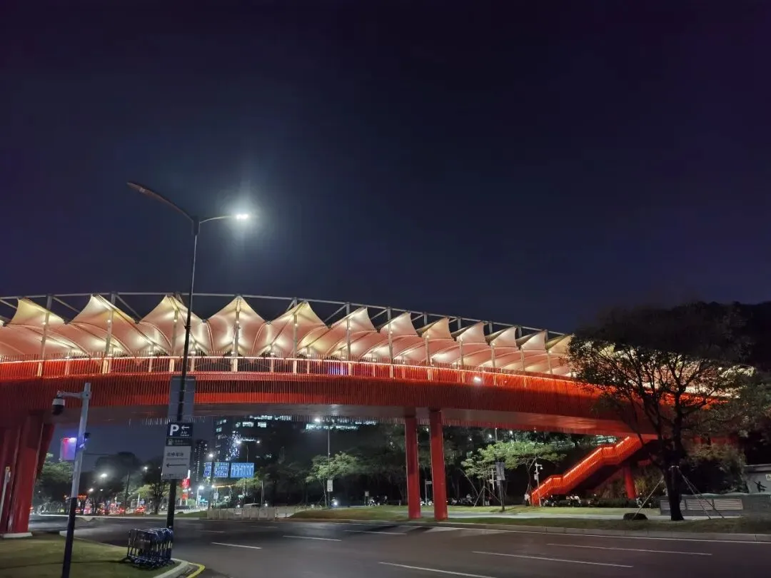 我觉得这是深圳人极致的浪漫——设计简约得不能再简约了,整个廊桥就一种红色。亮丽但不刺眼,想想换成其它任何一种颜色,恐怕都难有这种味道。我老觉得它有点像旧金山的金门大桥,也是通体红色,那种魅力,说不清,但就是动人。很多年前第一次踏上金门大桥也是被它的红所震撼。今天,这种感觉再次袭来。。。
