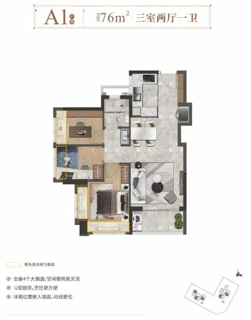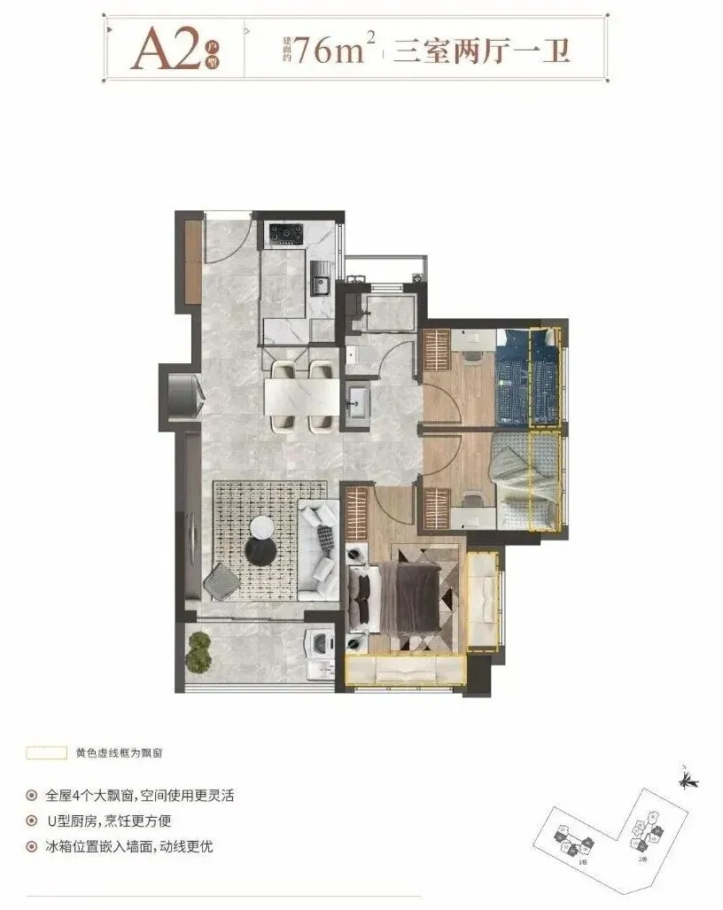 ——建面约76㎡3房2厅1卫